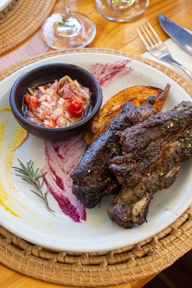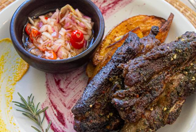 Principal: bondiola con salsa agridulce y papas rústicas, bife de chorizo con vegetales asados o lasagna de vegetales maridado con Cabernet Souvignon & Merlot “Magnanimo”